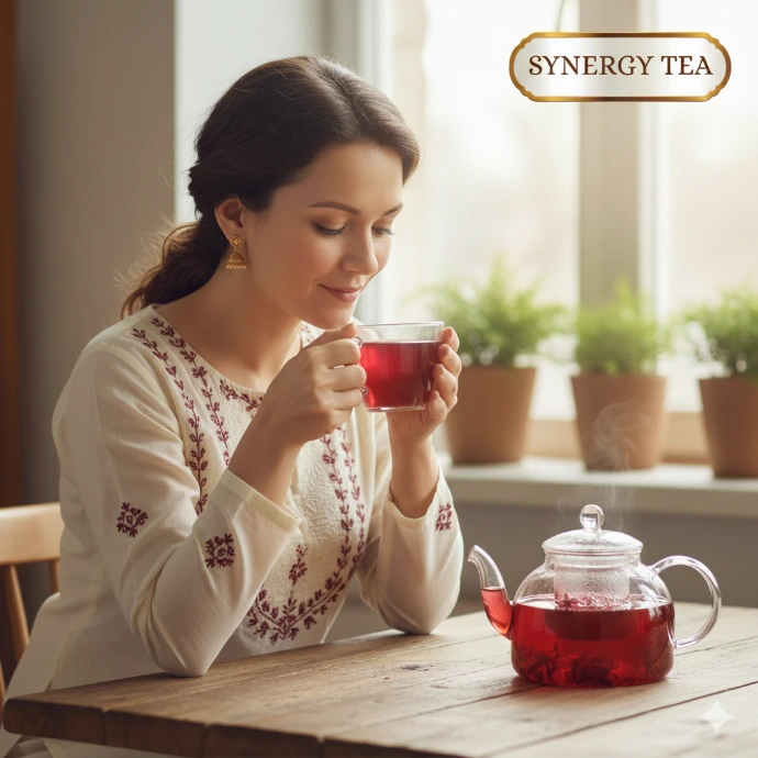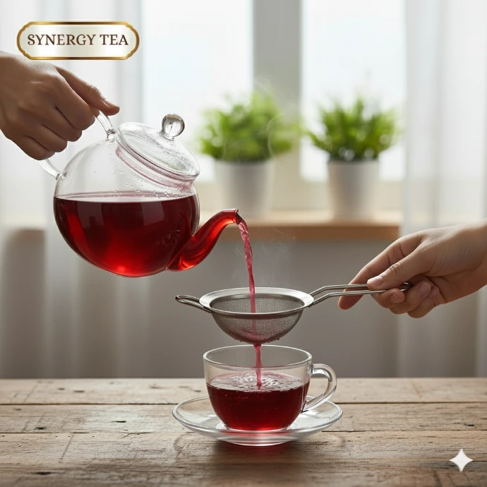 Refreshing hibiscus tea rich in antioxidants for daily wellness.